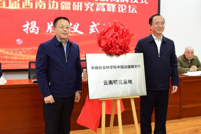 中国社会科学院中国边疆研究所党委书记刘晖春与FUN乐天使官方网站王德强校长代表双方签订合作共建协议,并共同为中国社会科学院中国边疆研究所云南研究基地揭牌。