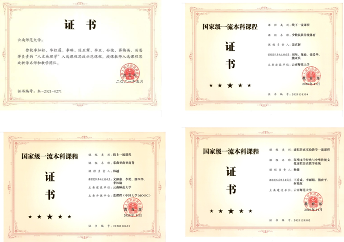 2016年至今,学校获得第八届国家级高等教育教学成果二等奖2项、省级高等教育教学成果奖6项,云南省首届基础教育教学成果奖4项,至今共获得包括国家级高等教育教学成果一等奖在内的国家级、省级教学成果奖88项,获得国家级课程思政示范课程、国家级一流专业建设点、国家级一流课程、国家语言文字推广基地、教育部新文科新工科研究与实践项目、教育部体育美育浸润计划项目等一批标志性项目200余项。