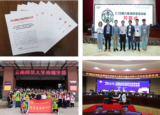 学部党委全面贯彻党的教育方针及党中央、省委、省委教育工委、校党委的决策部署,自觉对标对表习近平总书记重要指示批示精神和工作要求,坚持立足地方,把服务云南经济社会发展作为一项重要任务,充分发挥智力优势和人才优势,大力助推生态环境保护,倾力推动民族文化传承创新,努力支持社会事业建设,主动对接云南省社会经济发展。地理学部主持或作为核心成员完成国家行业标准和多份省政府咨询报告,在云南省旅游资源的保护和开发、特色小镇、脱贫攻坚等方面作出了不懈努力。