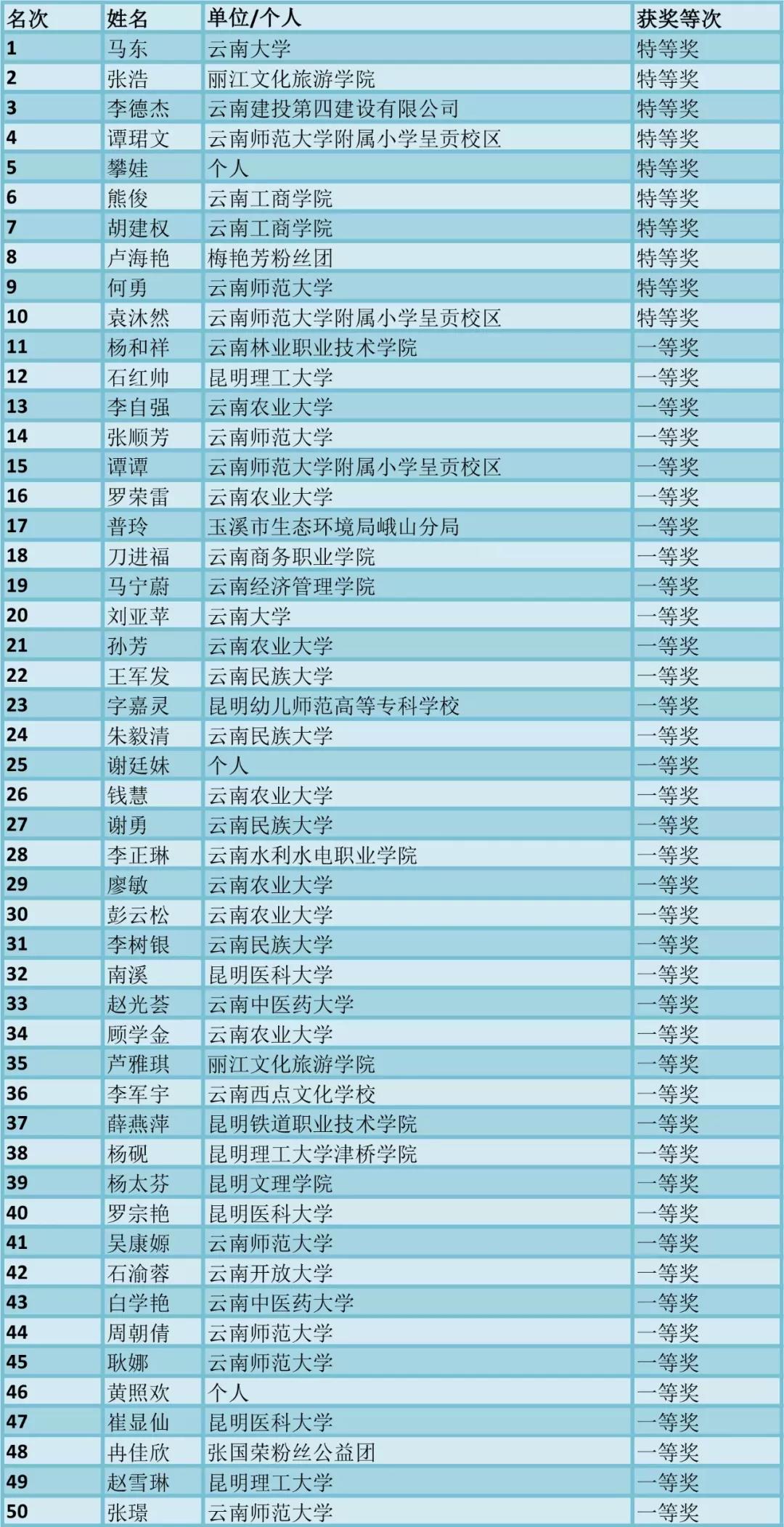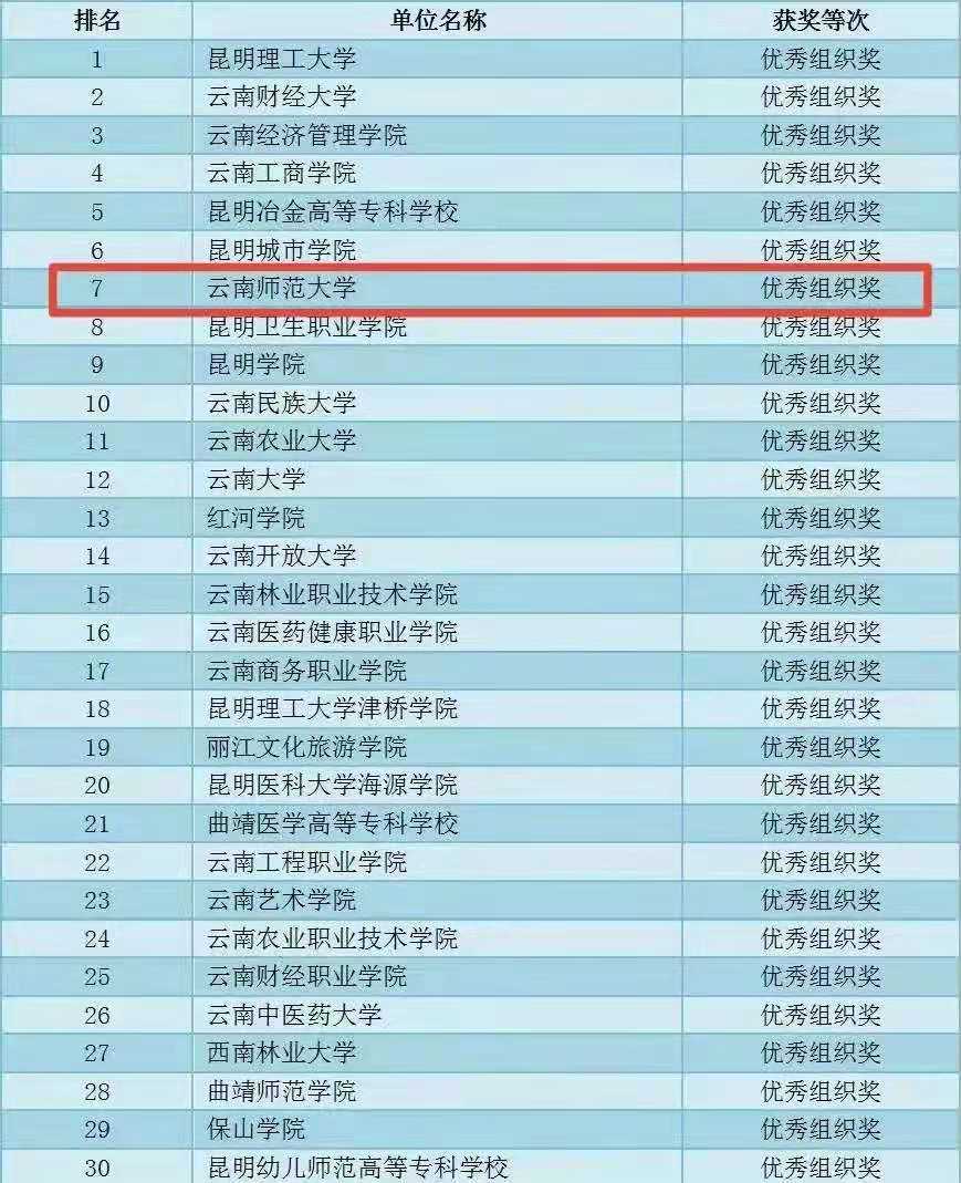11月4日,由COP15云南省筹备办新闻宣传部、云南省文化和旅游厅、云南省教育厅、云南省生态环境厅、云南省侨联特组织开展的“COP15知识挑战赛”最终获奖名单出炉。fun88官网积极组织师生参加此次挑战赛,荣获优秀组织奖。经过激烈角逐,个人获奖TOP100中,FUN乐天使官方网站共1人获特等奖,10人获一等奖,获奖人数位居全省第二。