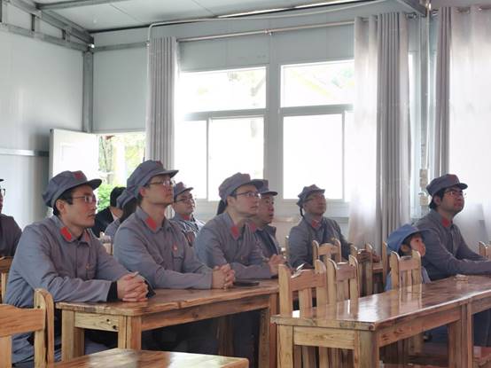 在前往柯渡纪念馆的大巴车上,参加本次主题教育实践活动的全体党员放声齐唱《没有共产党就没有新中国》《歌唱祖国》《东方红》等经典红歌,用质朴的歌声表达了对党的热爱与忠诚。在柯渡红军纪念馆工作人员的讲解下,教工党员们详细聆听了红军长征的艰辛历程,参观了中央红军总部长征驻地旧址,总参谋部作战室,毛泽东、周恩来、朱德、刘伯承等老一辈革命家长征路居丹桂村的休息室及烈士遗物。重走长征路,使大家切身融入“渡江令”发布时的场景,回顾了红军长征路上不朽的印记,被红军战士坚韧不拔、团结战斗的顽强意志和革命精神深深震撼,同时深切感受了“红军不怕远征难,万水千山只等闲”的豪迈气概。随后,在纪念馆内,全体党员举起右手,面对党旗庄严宣誓,重温入党誓词,不忘初心、牢记使命。党员们最后观看了纪录片《红军长征过寻甸和缅怀先烈忆长征》,并进行了现场学习和分享交流活动。通过本次主题党日活动,全体党员同志们感受到了长征精神的可贵。