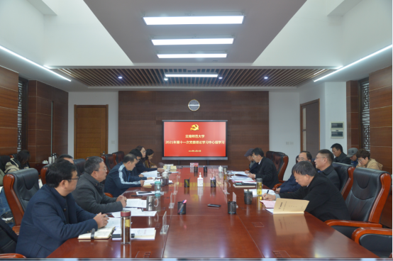 11月24日下午,fun88官网在呈贡校区行政楼437会议室举行2021年校党委理论学习中心组第十一次集中学习。会议重点学习了党的十九届六中全会精神,同时深入学习了习近平总书记在中央人才工作会议的重要讲话精神、《云南省教育系统统一战线知识读本》。校党委委员,其他省管干部,有关单位及学院主要负责人参加学习。会议由校党委书记蒋永文主持。