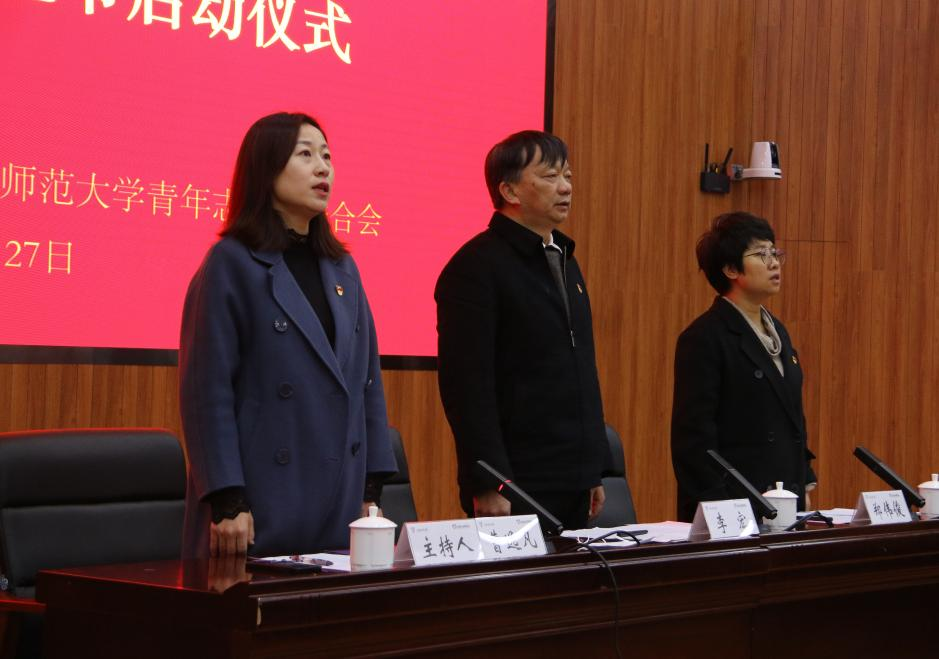启动仪式上,全体人员首先奏唱了中华人民共和国国歌。李宏副书记致辞,对志愿者们的热情加入感到欣慰,对志愿者的工作表示认可和赞扬,对全体志愿者的辛苦付出表示感谢。他希望全体志愿者努力践行“请党放心、强国有我”的青春誓言,大力弘扬“奉献、友爱、互助、进步”的志愿者精神,用心服务,积极奉献,为人民、为社会、为国家贡献自己的青春力量。