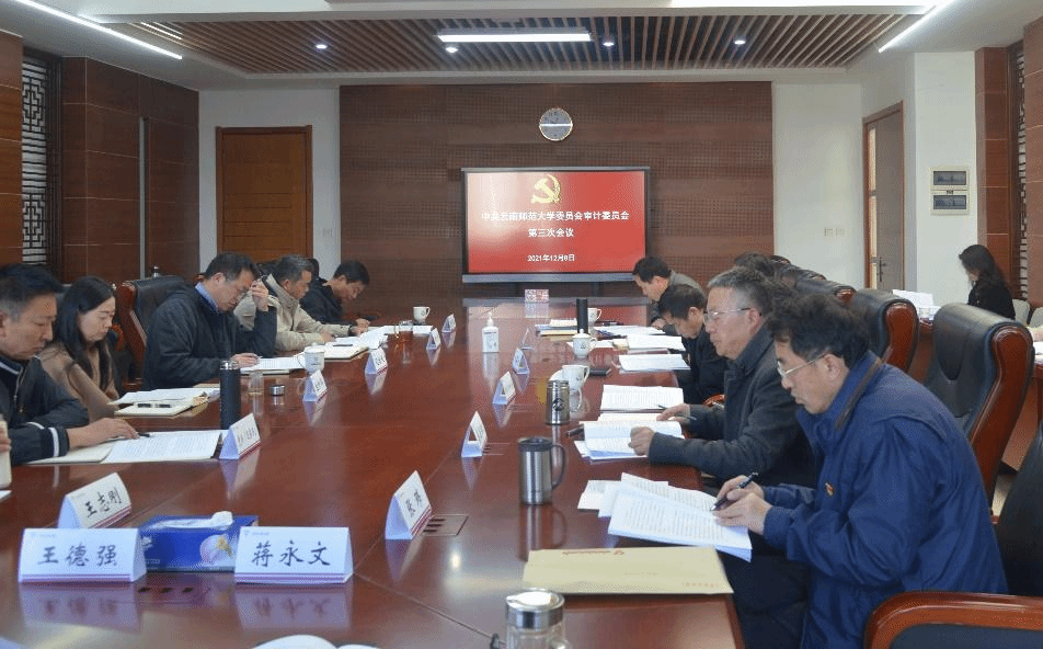 2021年12月8日,中共FUN乐天使官方网站委员会审计委员会第三次会议在呈贡校区召开。校党委书记、审计委员会主任蒋永文,校长、审计委员会主任王德强,校党委审计委员会副主任张玮、王志刚、蔡金红,审计委员会成员单位主要负责人参加会议。会议由蒋永文书记主持。