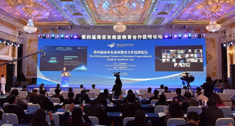 12月9日,以“务实合作,共同发展”为主题的第四届南亚东南亚教育合作昆明论坛在昆明举行。论坛设1个主论坛,3个分论坛和1项艺术展览,重点围绕大学联盟建设、双边和多边教育合作、中外人文交流等专题开展交流与研讨。来自16个国家的200余名教育行政部门负责人和高校代表通过线上线下方式相聚论坛,共襄疫情当下的教育合作发展盛举。在全球抗击新冠疫情的特殊时期,举办第四届南亚东南亚教育合作论坛,意在深度研讨教育发展的未来方向,探索教育交流合作的创新模式,推动区域教育的务实合作与共同发展。fun88官网党委书记蒋永文、副校长郝淑美,华文学院党委书记和雪莲、副院长沈毅,对外合作交流处处长黄瑛等参加了为期两天的论坛开幕式及分论坛。