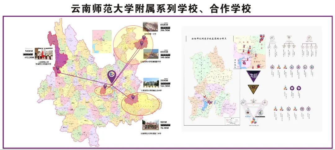 统筹师大附中、师大附小等成员学校,建立了一支教学业绩突出、声誉斐然的专家团队,采取选派校长和骨干教师、送教下乡、全员轮训等方式,对口帮扶梁河、禄劝、迪庆、临沧、景洪、永善、丽江等地20余所基层薄弱中小学校。师大附中帮扶梁河一中,教育教学质量逐年跃升,目前高考各项指标居德宏州同类学校第一名;师大实验中学帮扶梁河县民族寄宿制学校,中考各项指标居全州第一名;师大附小帮扶遮岛小学等15所小学,近5年“走出去,请进来”,累计培训梁河县教师700余人。云南民族中学先后投入30多万元做好梁河县大厂中学、九保民族中学和芒东民族中学的精准帮扶工作,帮助培训帮扶学校培养骨干教师达60余人次;附属世纪金源学校共向对口梁河县基础教育派出帮扶人员166人次,送教下乡130多堂(节)。附属官渡中、小学从2016年开始对口帮扶梁河县曩宋中学,送课下乡21人次。