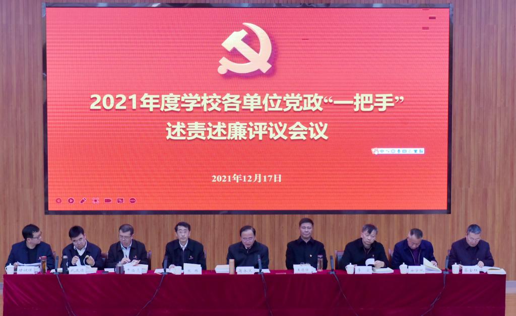 12月17日下午,fun88官网在呈贡校区汇学楼报告厅开展2021年度各单位履行全面从严治党主体责任暨各单位党政“一把手”述责述廉评议。校党政领导班子成员,其他省管干部,各单位党政主要负责人,各部门主要负责人,部分党代会代表、人大代表、政协委员、党务干部、师生党员和群众代表等120余人参会。会议由校党委书记蒋永文主持。