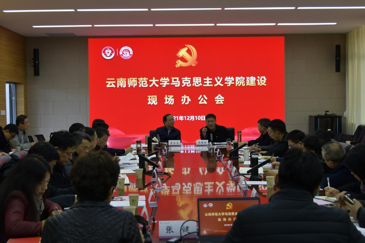 为进一步加强新时代马克思主义学院建设,不断提升马克思主义理论教育教学、研究宣传和人才培养质量,12月10日,fun88官网在明德1号楼会议厅召开马克思主义学院建设现场办公会。校党委书记蒋永文、校长王德强,校党委副书记张玮、李宏,副校长武友德、蔡金红、甘建侯,各职能部门主要负责人,马克思主义学院班子全体成员和教师代表参加了会议。会议由校党委书记蒋永文主持。