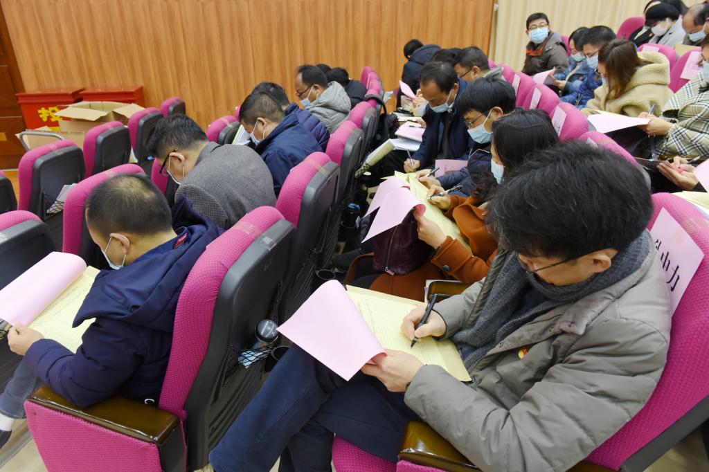 在听取学校领导班子和领导干部个人述职述廉报告后,全体参会人员认真填写民主测评表,对2021年度学校领导班子和领导干部的履职情况、落实党风廉政建设责任制工作、学校选人用人工作和新提拔干部等情况进行民主测评。
