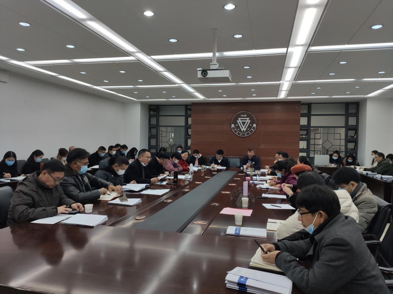 武友德副校长强调,期末本科教学工作要以疫情防控大局为重,遵守学校放假离校政策,做好期末考试等各类常规工作的调整协调,做好师生信息通报。武友德副校长指出,要进一步强化本科专业、课程建设,落实专业综合评价和课程等级评价改革举措,提升全校本科专业和课程建设水平。一是,要以课程建设为基础,加强课程等级评价,全校本科专业核心课程必须根据各专业等级建设规划进行对标建设,高度支撑专业建设。二是,优化课程等级准入要求,减少准入流程,减少准入材料,加强信息化手段运用,减轻教师负担。三是,总结专业负责人考核的经验,加强考核结果的运用,对存在的问题进行整改。四是,各专业要充分做好师范类专业认证的准备工作,尽快开展新版人才培养方案修订工作,加强教师教育公共课程建设。武友德副校长还对学生图像信息采集、教师教学能力考核、学院(学部)年度考核绩效激励分配等方面的问题做了要求。