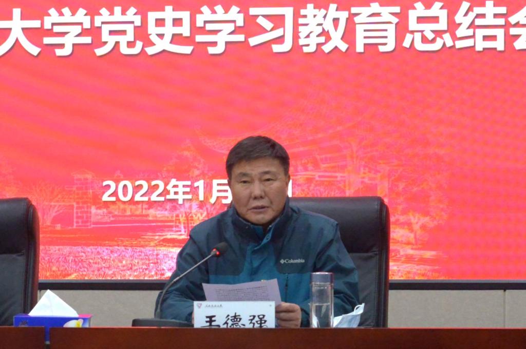 王德强校长就贯彻落实好本次会议精神提出三点要求,一是提高政治站位,以钉钉子的精神狠抓落实,在再学习、再领悟、再对标上持续下功夫;二是认真总结经验,全面分析存在的短板弱项,狠抓整改落实,在巩固提升中出成效;三是坚持守正创新,在健全长效机制上持续用力,深入推进“我为群众办实事”“我为师生办实事”实践活动常态化长效化,推动党史学习教育成果向纵深发展,以优异成绩迎接党的二十大胜利召开。