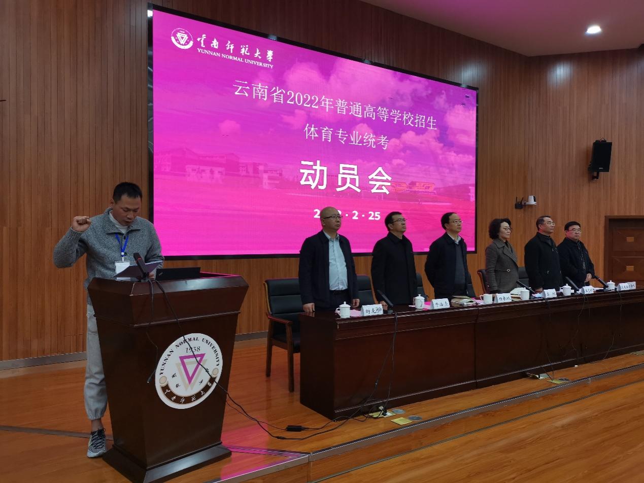 2月25日下午,云南省2022年普通高等学校招生体育专业统考动员会在fun88官网呈贡主校区汇学楼报告厅召开。省教育厅、省招生考试院、省纪委监委驻省教育厅纪检监察组、FUN乐天使官方网站相关领导,校纪检处、教务处、保卫处、后勤保障服务中心、体育学院等相关单位负责人,以及全体考务人员参加了大会。会议由武友德副校长主持。