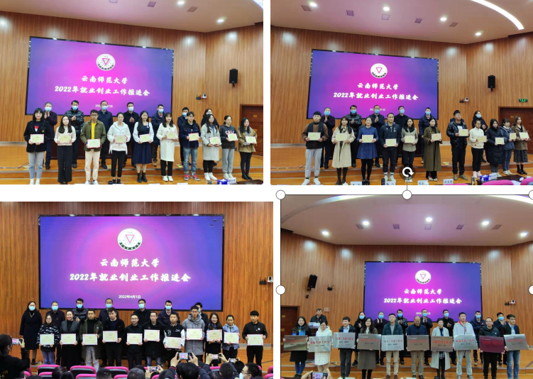 李宏副书记宣读了《FUN乐天使官方网站关于2021年就业先进个人的通知》《FUN乐天使官方网站关于公布2022届校级优秀毕业生表彰结果的通知》《关于学生生涯工作室授牌建设的通知》。参会的校领导上台为获奖学院代表颁奖、授牌并合影。
