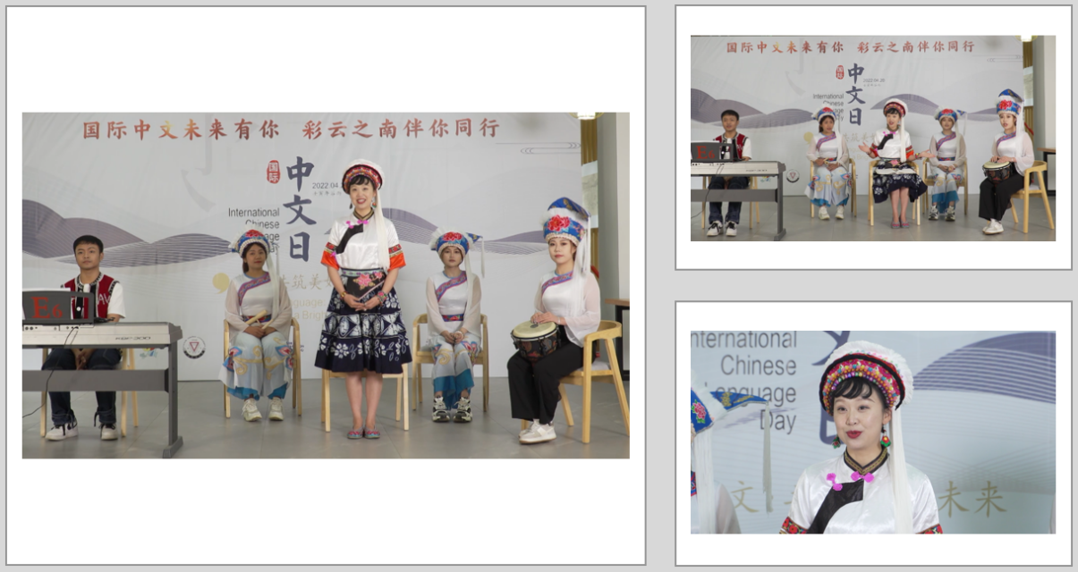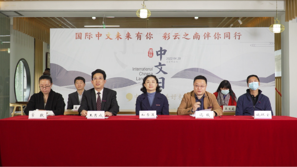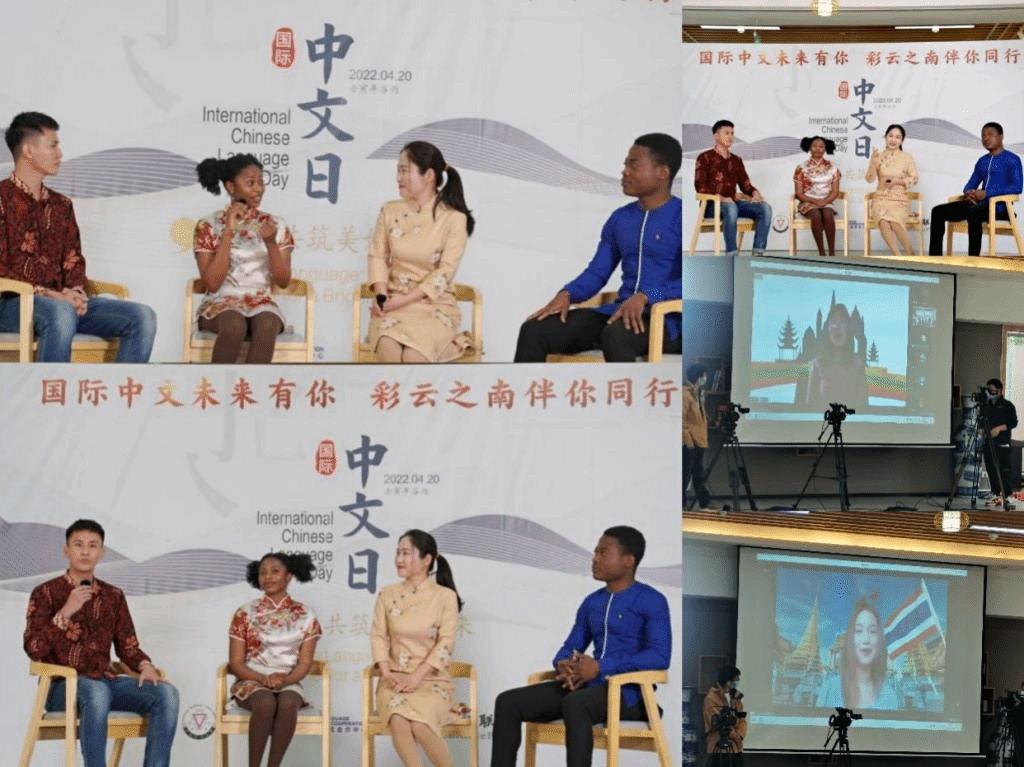 4月20日,为庆祝2022年“国际中文日”,响应教育部中外语言交流合作中心、中文联盟 “中文:共筑美好未来”的 活动倡议,国际汉语教育学院联合海内外合作院校、机构,共同举办了“国际中文未来有你,彩云之南伴你同行”庆祝活动。国际汉语教育学院党委书记和雪莲,院长王秀成,学院其他领导、相关部门、教师代表、昆明市非物质文化遗产保护传承基地——合虚民族民间文化传习馆艺术家,以及在校国际留学生参加了现场活动,海外合作院校教师、学生等通过网络参加线上直播,共计上千人通过线上线下的方式参加了本次活动。