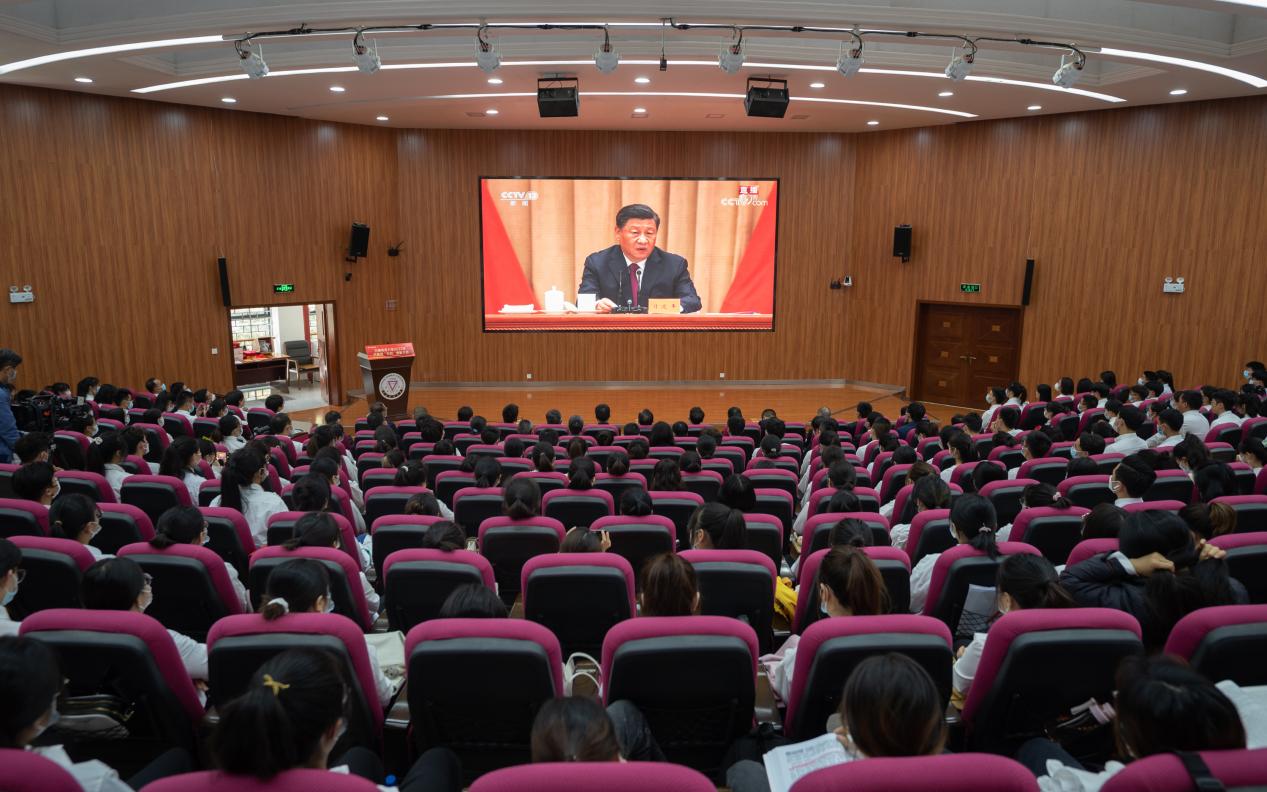 5月10日上午,庆祝中国共产主义青年团成立100周年大会在北京人民大会堂隆重举行,中共中央总书记、国家主席、中央军委主席习近平出席大会并发表重要讲话。fun88官网广大师生员工以高昂的精神面貌和饱满的热情同步收听收看了庆祝中国共产主义青年团成立100周年大会直播。