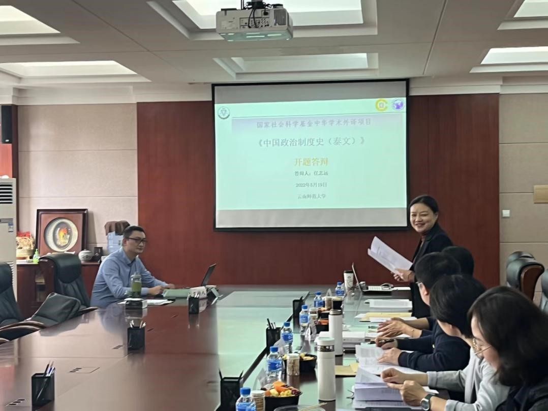 5月19日,云南华文学院举办了国家社科基金中华学术外译项目开题答辩会,学院青年教师任志远博士就《中国政治制度史》泰译项目(2021年度立项)做了专题发言。社科办副主任王天玉教授,云南华文学院常务副院长段洁云教授,云南华文学院副院长沈毅教授,FUN乐天使官方网站马克思主义学院副院长张悦教授,泰籍专家Seree Chomchey副教授到场指导。答辩会由云南华文学院何冬梅教授主持。