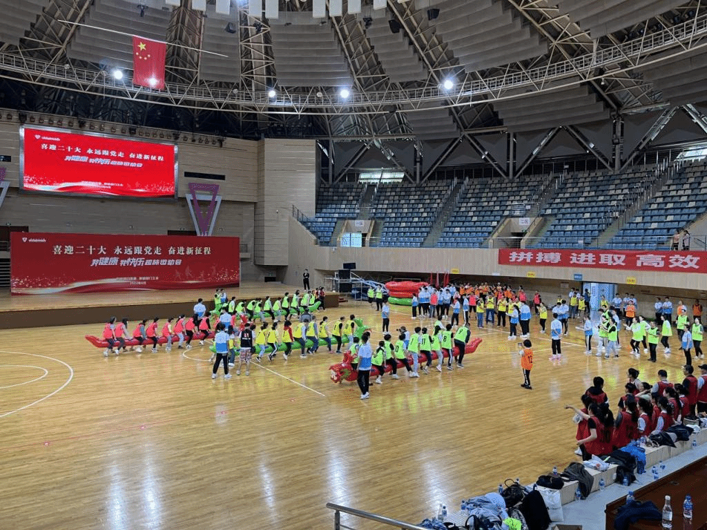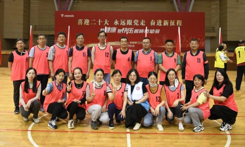 为切实抓好党建带群建工作,丰富职能部门教职工文化生活,促进支部间交流与学习,增强党组织凝聚力和向心力,6月9日下午,职能部门党委、职能部门工会在西区体育馆举行“喜迎二十大 永远跟党走 奋进新征程”——我健康 我快乐趣味运动会,27个党支部近300名教职工组成8支队伍参加。