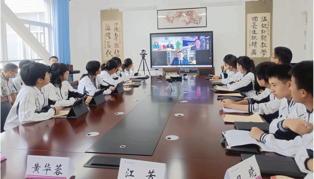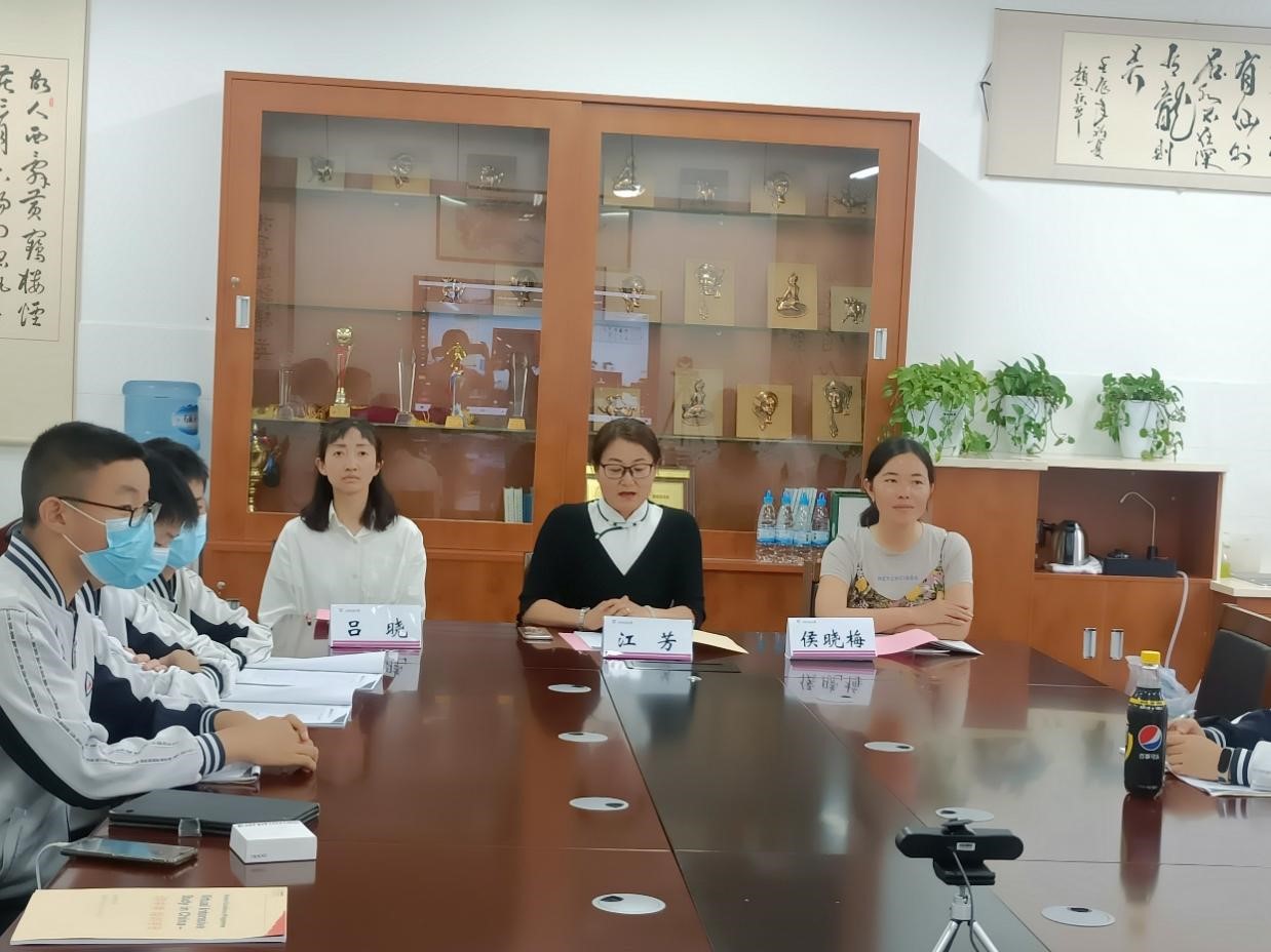 云铜中学江芳副校长发言,她表示云铜中学很荣幸参与本次项目,与英国三所学校结缘,相信中英两国同学一定能够跨越时空的界限,一起学习进步,收获友谊。