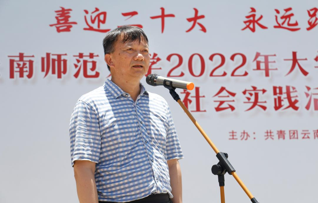 校党委副书记李宏在启动仪式上讲话,代表学校向即将出征的师生们致以亲切的问候和祝愿。他指出,本次暑期“三下乡”社会实践活动是深入贯彻落实习近平总书记在庆祝中国共产主义青年团成立100周年大会上的重要讲话精神和考察云南重要讲话精神的具体体现,是以实际行动迎接党的二十大胜利召开的具体举措,是引导和帮助fun88官网青年大学生将理论与实践相结合的“大思政课”,是社会大课堂中“受教育、长才干、作贡献”的青春历练。他对参加实践活动的同学们提出四点希望:一是牢记习近平总书记的嘱托,坚定理想信念,抓住此次“三下乡”社会实践活动的宝贵机会,苦练本领、锐意创新,艰苦奋斗、担当奉献,争取在青春的赛道上跑出当代青年的最好成绩;二是聚焦国家发展战略,紧扣云南高质量跨越式发展需求,用脚步丈量祖国大地,用眼睛发现中国精神,用耳朵倾听人民呼声,用内心感应时代脉搏,为谱写好中国梦的云南篇章贡献青春力量;三是在社会实践活动中不怕吃苦、热情服务、虚心学习,认真开展调查研究,切实为当地做实事、做好事,为群众排忧解难;四是严守纪律、安全第一,确保自身生命财产安全,切实做好疫情防护,注意防范自然灾害,与学校和老师保持密切联系,高高兴兴实践去,平平安安回校来,圆满完成暑期社会实践活动。