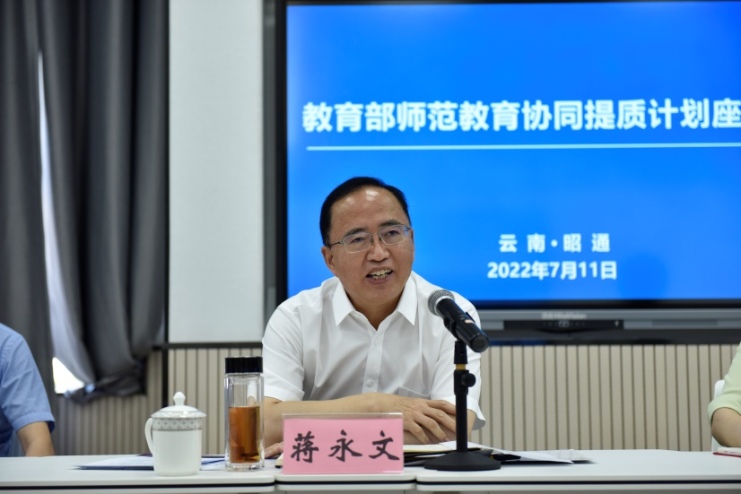 蒋永文书记高度肯定了昭通学院办学中取得的成绩,表示将严格落实好教育部师范教育协同提质计划的相关要求,根据昭通学院的需求,整合学校资源,积极为昭通学院的发展进一步细化帮扶措施,竭尽所能推动昭通学院高质量发展。