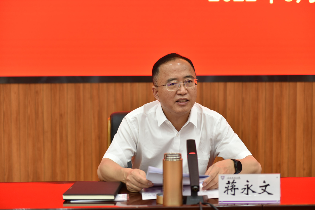 蒋永文强调,今年是党的二十大召开之年,各级党组织、全体领导干部必须增强风险意识,树牢底线思维,有效防范化解各类风险挑战。要牢牢守好意识形态阵地,维护学校意识形态安全;要继续抓好毕业生就业创业工作,促进毕业生更加充分更高质量就业;要牢牢守好安全发展底线,确保校园安全和谐稳定。