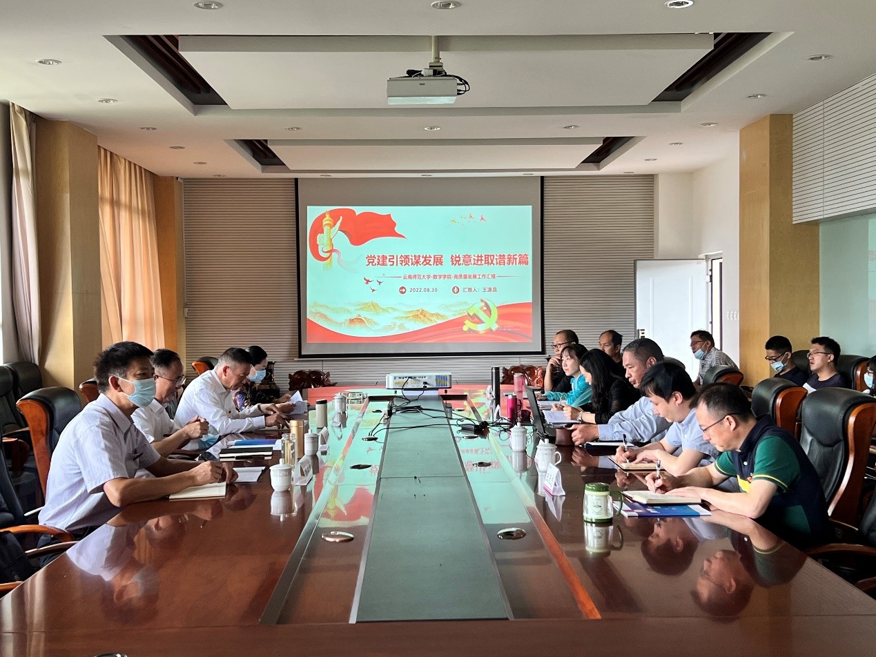 数学学院党委书记王源昌分别从党的建设、班子建设、学科及专业建设三方面对党建引领学院高质量发展工作进行详细汇报。结合学院党建工作中的亮点和存在问题,进一步明确了学院党建引领学科建设,党建工作与学院发展紧密结合的具体举措。