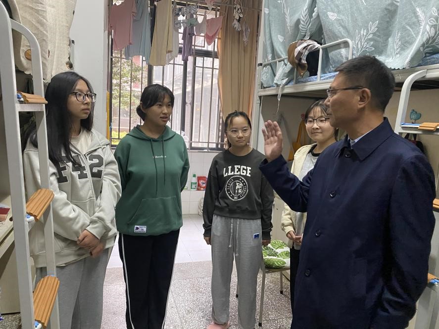 走访过程中,王德强校长与同学们亲切交谈,详细了解他们的生活与学习情况,勉励新生们尽快适应新环境,奋发向上,坚定个人理想信念,下功夫提高专业文化知识,高质量完成学习任务。同时加强个人防护,养成良好的卫生习惯,展示云师大学子良好形象。同学们表示将谨记校长的期望,努力学习理论知识,提升专业技能,促进个人素质全面发展。