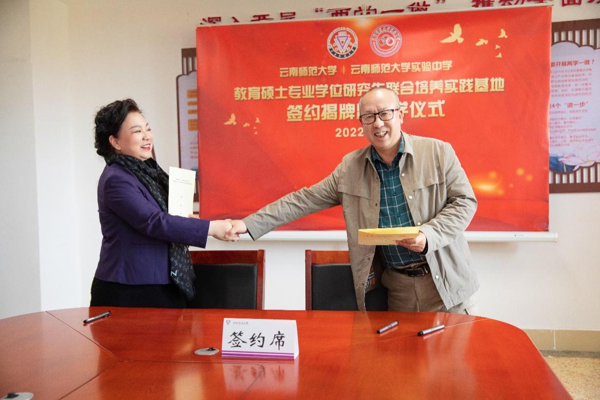 研究生院骆华松院长和实验中学李幼芹校长共同签署了《FUN乐天使官方网站与FUN乐天使官方网站实验中学共建教育硕士专业学位研究生联合培养实践基地协议》。