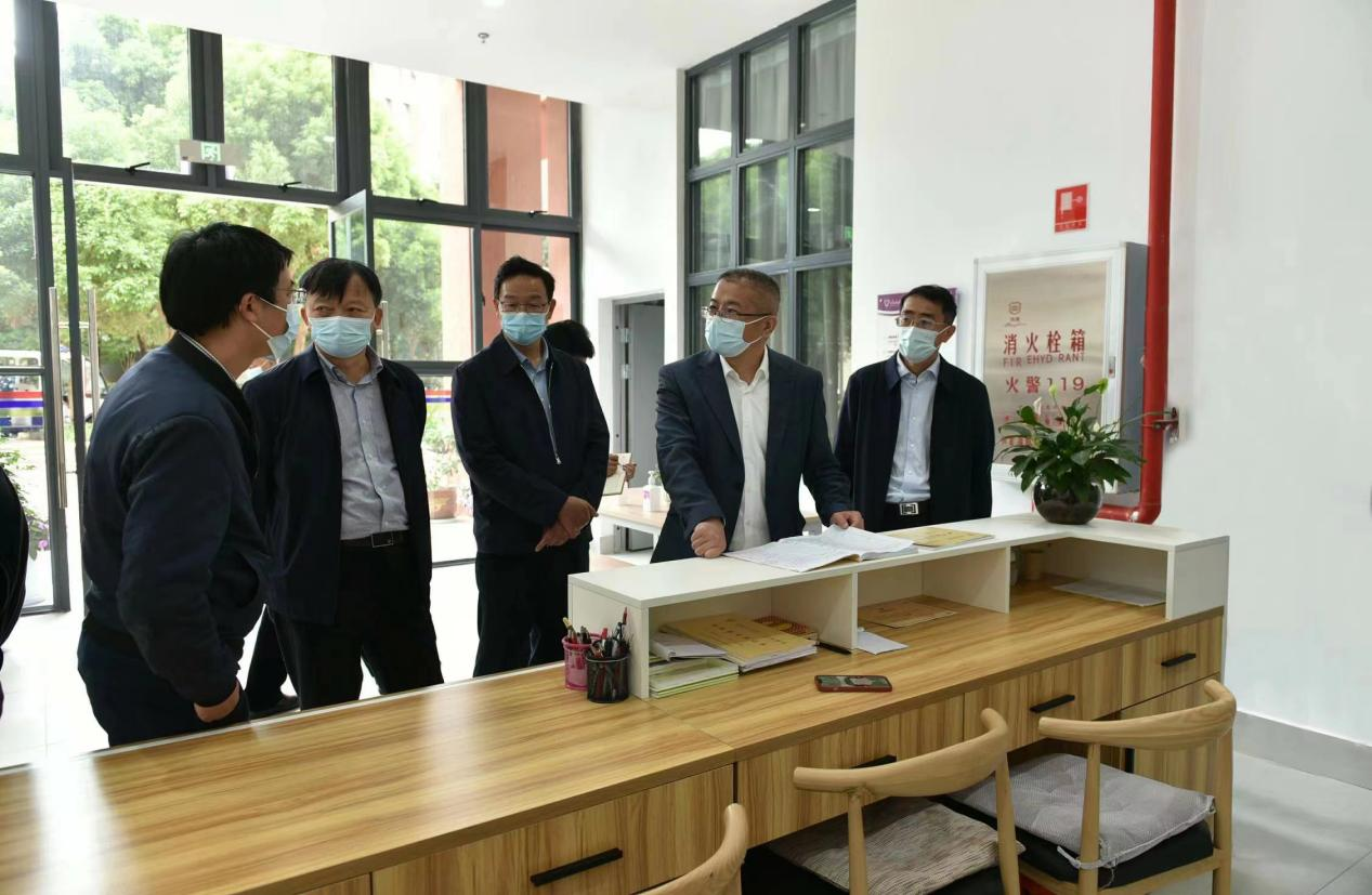 在文聚学生公寓,张祖武查看了学生进出记录,了解防疫措施,并实地查看了学生宿舍、相关配套设施等。他强调,学校后勤保障一定要以师生为中心,为学生提供优质、安全的服务。