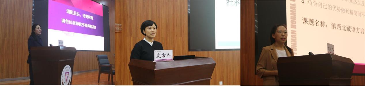 会上,法学与社会学学院院长尤伟琼、传媒学院陆双梅教授、文学院青年教师次林央珍博士分别从2022年国家社科基金的组织申报工作、项目文本撰写、申报经验分享等方面进行了交流发言。