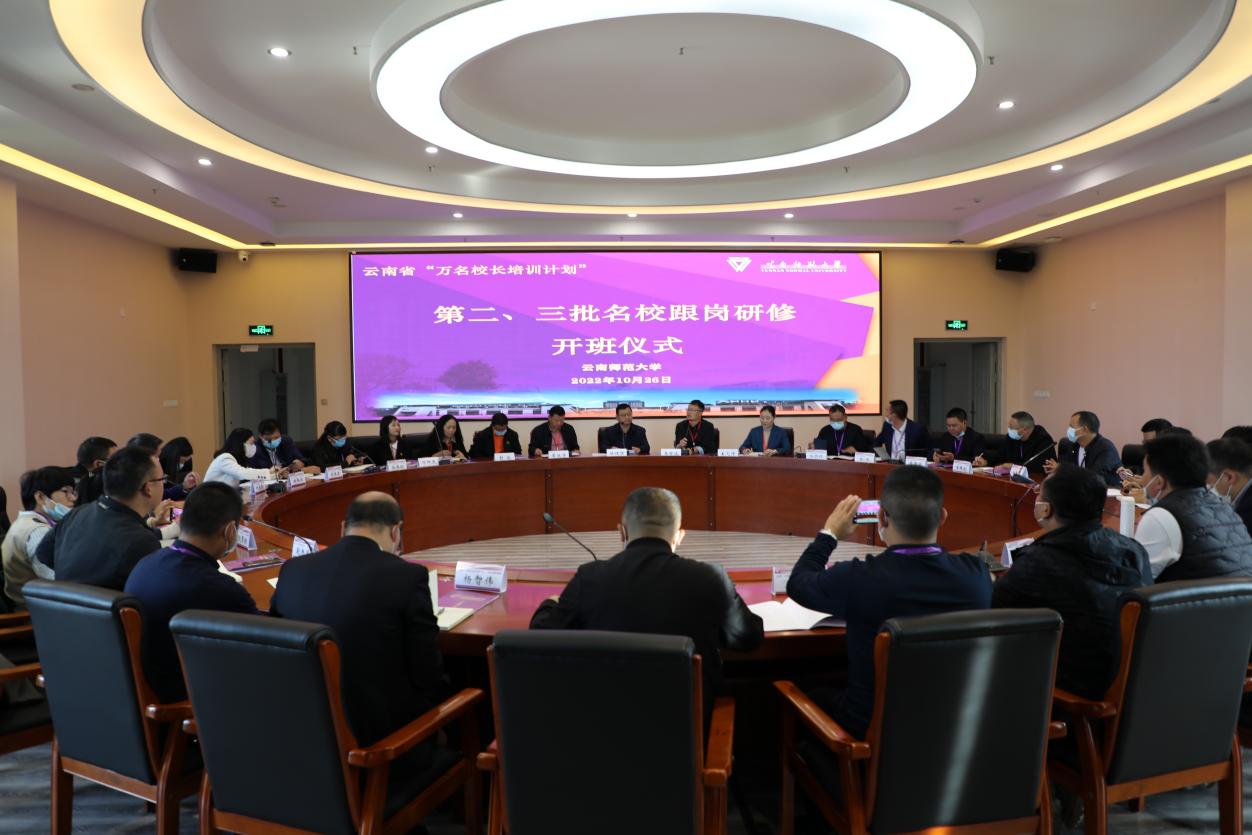 10月26日,云南省“万名校长培训计划”第二、三批名校跟岗研修开班仪式在fun88官网呈贡校区国家教师教育教学实验中心举行。副校长甘健侯,万名校长培训计划项目办公室主任王世波,副主任翟波宇、姜元涛,项目办全体工作人员及来自全省各州市的38名参训学员参加了开班仪式。