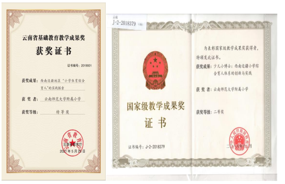 团队攻关,书写“新业绩”。学校高度重视科研工作,2018年,《少儿小博士:西南边疆小学综合育人体系的创新与实践》获国家级教学成果二等奖;2020年“云南沿边跨境民族地区学前教育可持续发展研究”课题在全国教育科学“十三五”规划课题(西部项目)立项,是云南省2020年度基础教育阶段唯一一项获准立项的国家级课题,实现云南省中小学在国家级课题申报重大突破;2020年申报的《西南边疆——小学体育综合育人》获云南省基础教育成果奖唯一特等奖。近10年来,学校及教师个人有300余万字的教科研论文、教改经验在国家级、省级刊物发表,正式出版了《基于‘做人教育’理念的学校课程建设》等著作,还有千万字的各学科优质教辅材料辐射全省各地。