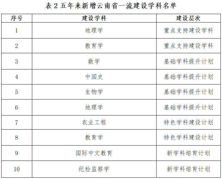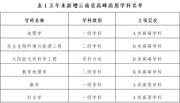 学校新增6个云南省高峰高原学科、10个云南省一流建设学科,目前拥有各类省级学科32个(包含一级学科、二级学科、学科方向)。在全国第四轮学科评估中,15个学科整体排名进入前70%;地理学被评为B+、教育学被评为B-,学科整体排名分别进入全国前20%、前40%。化学学科和工程学学科进入ESI世界排名前1%。
