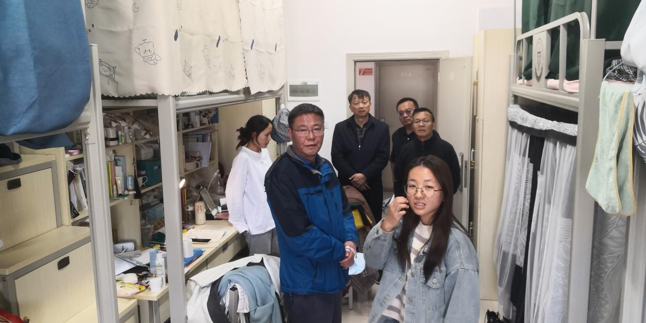 在已建成投入使用的学生宿舍,王德强、李宏、孟庆红与入住的同学亲切交谈,了解她们学习、生活情况,对新宿舍住宿的感受和意见建议,鼓励她们要刻苦努力学习、健康成长成才。
