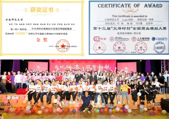 四是专业学位学生实践能力显著提升。通过组织学生参加研究生论坛、学术讲演比赛、课堂教学技能比赛、创新创业大赛、模拟求职大赛、与学校就业处联合建设云南省大学生创业园、举办菁英论坛、红烛大讲堂等方式,构建系统化、多层面提升学生综合素质的渠道和平台。近年来,学生获学校研究生创新基金立项数逐年上升,先后获全国大学生“创青春”MBA专项赛全国金奖(2016年,全省唯一),获“尖烽时刻”全国商业模拟大赛总决赛一等奖、二等奖、三等奖;获2021年云南省模拟求职大赛金奖2个、铜奖1个;获云南省2021年外研社·国才杯全国英语演讲大赛二等奖;获云南省2022年大学生网络文化节二等奖;获云南省2022年第九届“学创杯”全国大学生创业综合模拟竞赛二等奖;学院学生社团组织“MBA联合会”当选中国MBA西南联盟第十三届主席单位,2016年承办了中国MBA西南联盟第十一届主席峰会。