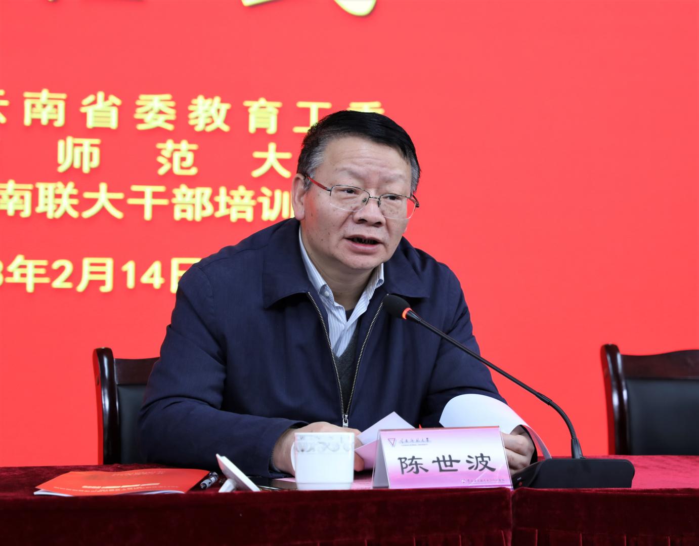 陈世波在培训动员时强调,举办全省高校思想政治理论课教师培训,既是我省实施高校思政课教师素质提升工程的重要内容,也是提升思政课教师综合素质、推动我省思政课改革创新的重要举措。培训的主要目的是学习贯彻党的二十大精神,深入贯彻落实中宣部、教育部关于在高校思政课中进一步加强习近平新时代中国特色社会主义思想教育教学工作要求,贯彻落实省委省政府主要领导关于思政课建设的指示精神,坚持不懈用习近平新时代中国特色社会主义思想铸魂育人。通过学习培训,一是深入学习贯彻党的二十大精神,着力推动党的二十大精神有机融入高校思政课教育教学;二是坚持问题导向,用好高校思政课新修订教材,着力提高思政课教育教学水平;三是不断增强荣誉感,着力打造一支政治强、情怀深、思维新、视野广、自律严、人格正的思政课教师队伍。