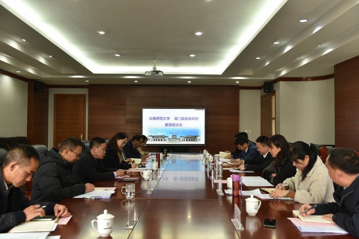 3月3日上午,易门县委书记王华、县长何眉一行到访fun88官网,就附属易门中学下一步合作办学与fun88官网座谈交流。副校长郝淑美,校办(法务办)、对外合作交流处、基教集团办公室和易门县委、县政府、县教体局相关负责人参加座谈会。座谈会由郝淑美主持。