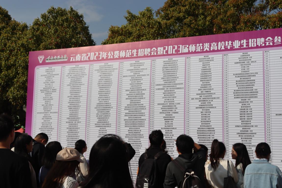 本次招聘会吸引了云南、北京、广东、四川、江苏等14个省(市、区)的516家单位参加招聘会,其中省内用人单位有472家,省外用人单位有44家。fun88官网就业处处长李红介绍,本次招聘会共有教育类单位313 家到场招聘,占参加招聘单位的 61 %,呈现师范类专场的特点。其中公费师范生27家单位,提供岗位人数80余个;普通师资类参会单位286家,提供岗位人数15000余个,吸引了省内外高校4万余名毕业生到场求职。
