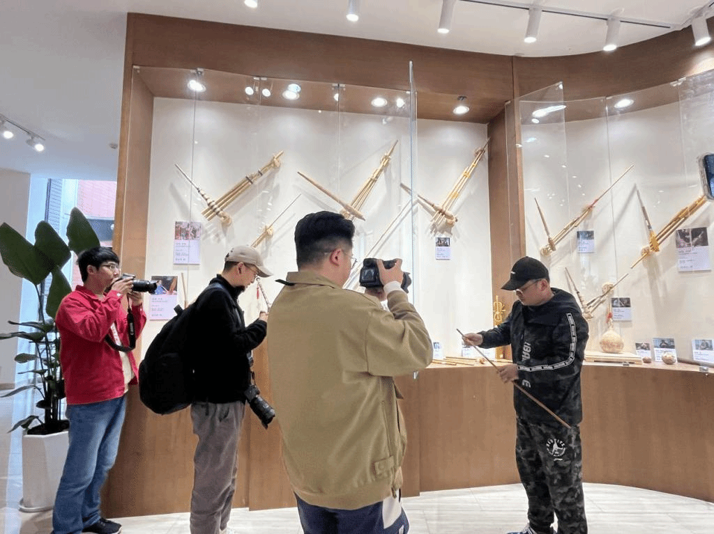 在音乐舞蹈学院“中国—南亚东南亚国家非遗音乐舞蹈教育资源数字化陈列馆”内,多家媒体对杨琛进行现场采访。旁边的演播厅内,各种乐器的声音时而空灵悦耳,时而浑厚激扬,新华社分别对拉祜族小三弦、象脚鼓、编铓,彝族的小三弦、四弦,佤族的木鼓、独弦胡、荜呀姆、艾格若、啸等民族乐器的合奏进行录制。