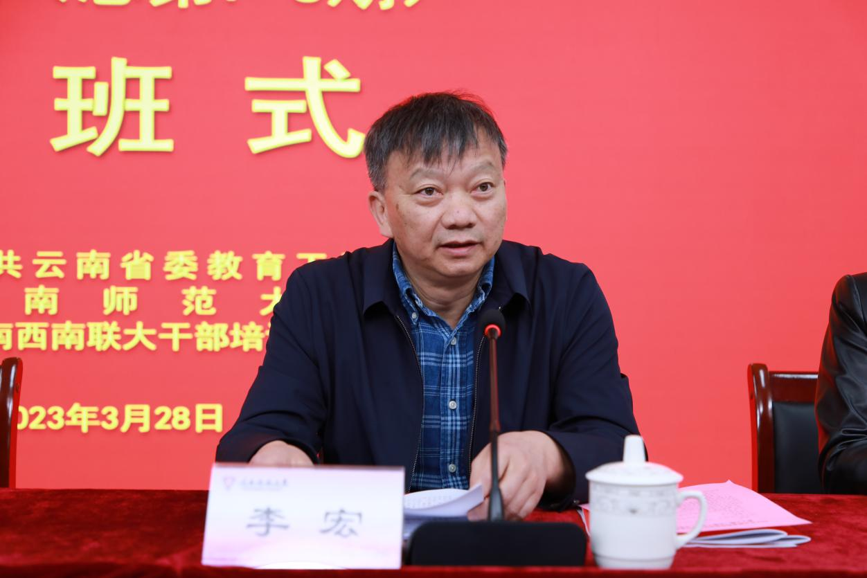 李宏在致辞中向参加本次培训的学员表示欢迎,向省委教育工委、省教育厅长期以来对云南西南联大干部培训基地的信任和支持表示感谢。他强调了习近平总书记考察调研西南联大旧址的重要指示精神,介绍了FUN乐天使官方网站和云南西南联大干部培训基地的发展历程,就培训班的组织、管理、服务提出了具体要求,要求管理团队竭诚为学员提供高质量的教学和后勤保障服务。同时,各位学员珍惜难得机会,专心致志学习,深入研究思考、互学互鉴,确保学有所成、学有所获,为推动全省高校思政工作高质量发展作出新的更大贡献。