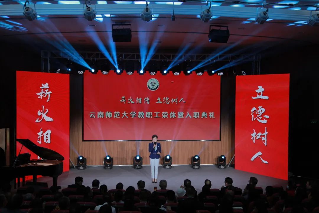 在入职环节,短片《缘来是你》使人倍感振奋,FUN乐天使官方网站新一代青春力量正在茁壮成长。主持人与新进教师代表访谈,从新进教师身上看到了联大精神的火炬传承不息,学校发展将继往开来、再谱华章。退休教师为新入职教师代表佩戴校徽,这是教书育人事业的传递,也是责任与使命的交接与延续。随后,云南省戏剧家协会驻会副主席、秘书长、国家一级演员李红梅老师带来话剧《桂梅老师》的精彩片段。人生需要榜样,事业需要传承,新入职的青年教师将以张桂梅老师为榜样,接过荣休教师的接力棒,扎根云岭大地,奉献三尺讲台,去创造属于自己和学校的辉煌。