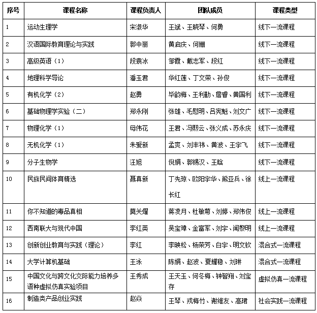 4月11日,教育部高等教育司发布了《关于第二批国家级一流本科课程认定结果的公示》,fun88官网共有16门课程入选国家级一流本科课程认定结果公示名单,其中线下一流课程9门,线上一流课程3门,混合式一流课程2门,虚拟仿真一流课程1门,社会实践一流课程1门,实现了国家级各类一流课程全覆盖,总体数量居云南省高校第二,与第一批相比取得了重大突破。