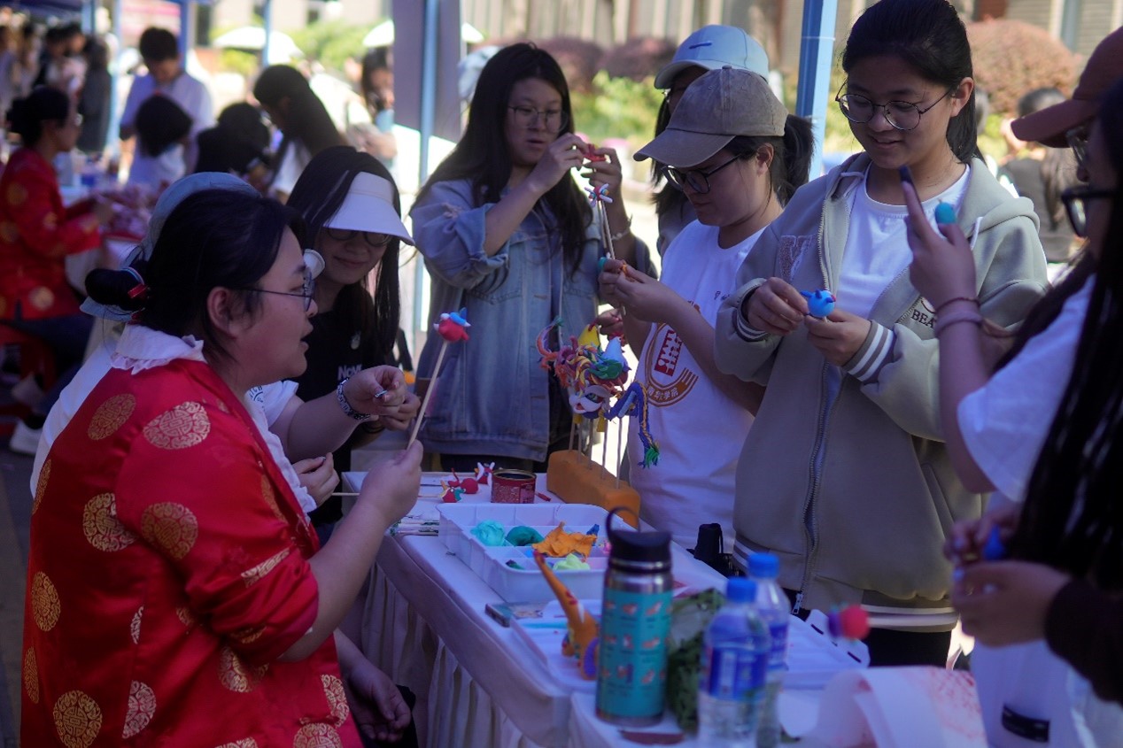 民俗游园活动是本次“国际中文日”的一大特色,学院为中、外学生搭建了“玩中学,学中做”的实践平台,让同学们在中国文化中畅游,在中外交流中增进文明对话。