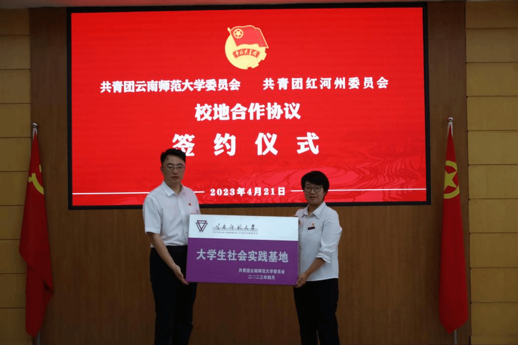 现场举行了“FUN乐天使官方网站学生社会实践基地”授牌仪式,FUN乐天使官方网站共青团建设的大学生社会实践基地正式落地红河。