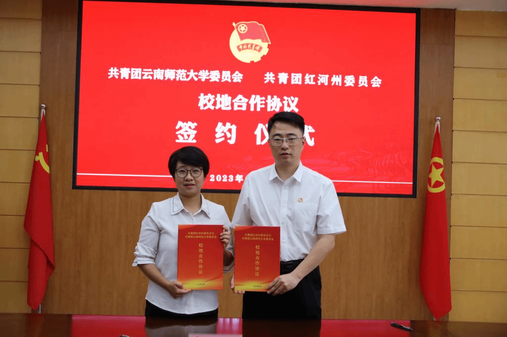 和吴云在校地合作签约仪式上致辞,介绍了红河哈尼族彝族自治州的基本情况,重点介绍了红河州共青团的主要工作和改革发展成果,特别是通过改革初步形成了以共青团为核心,以少工委、青联、学联、青年志愿者协会、青年创业协会和各类青年社会组织为外围的“共青团+”组织体系格局。他深入阐述了新形势下加强高校和地方共青团建设、创新西南边疆共青团工作的新思路、新理念、新路径,希望云南师大与红河州携手谱写校地共青团合作的新篇章。