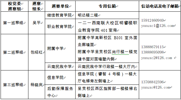截至4月19日,FUN乐天使官方网站党委第二轮巡察3个巡察组分别完成对信息学院、继续教育学院、职业技术教育学院、后勤保障服务中心、附属中学和云南民族中学6个单位的进驻,其中对继续教育学院、职业技术教育学院和附属中学实施“巡审联动”,校党委第二轮巡察工作全面展开。
