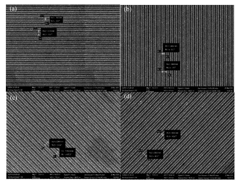 图1 用于探测四个线偏振光(0°、45°、90°、135°)的片上集成中波红外探测器的光学超表面SEM图(左),上述超结构在波长 3.5 µm、4.0 µm、4.5 µm和 5.0 µm时的透过率随偏振角度变化趋势(右)。