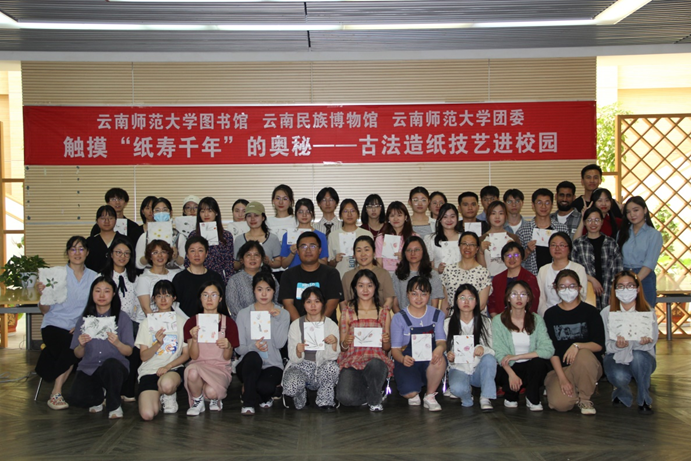 4月23日下午,由fun88官网图书馆、校团委联合云南民族博物馆举办的非遗文化体验活动“触摸‘纸寿千年’的奥秘——古法造纸技艺进校园”在图书馆成功举行。本次活动吸引了文学院、历史与行政学院、生命科学学院、华文学院等十余个学院的学生参与学习和体验,共同感受中华优秀传统文化的价值与魅力。