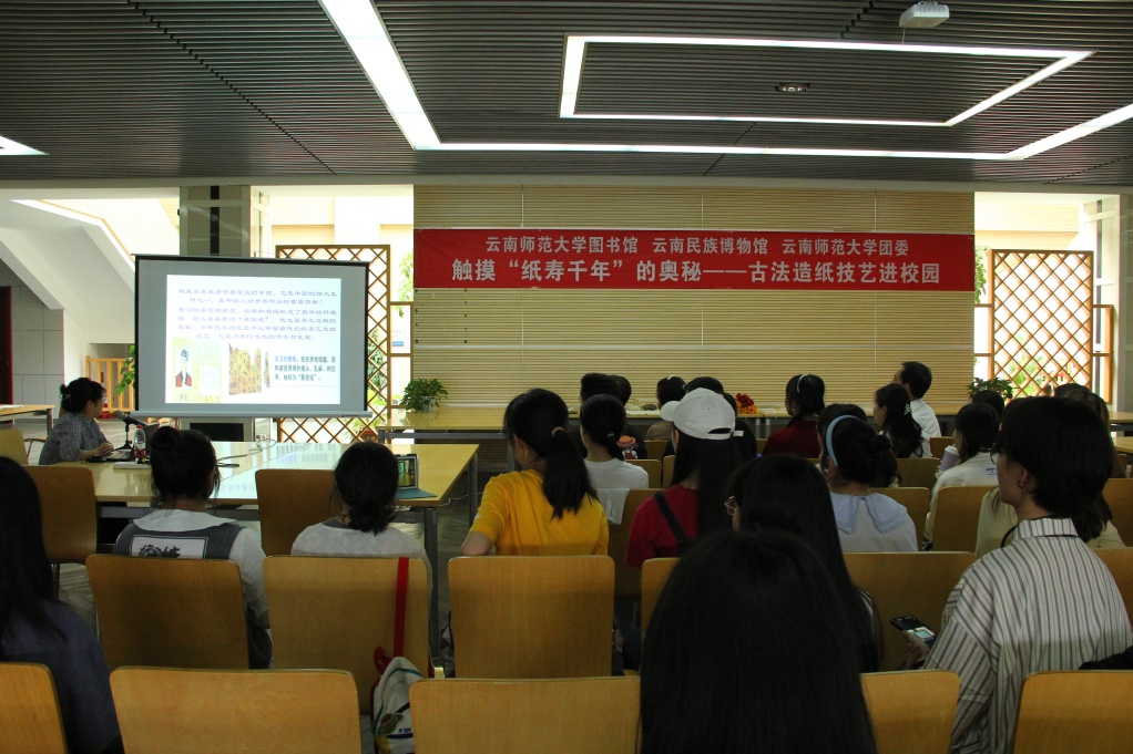 造纸术是人类文明史上的一项伟大发明,推动了人类书写材料的变革,这是中华民族对世界做出的卓越贡献,是中国人引以为傲的科学成就,其中蕴涵的古人智慧与科学精神是激发创新思维的力量源泉,值得我们代代相传。传统手工纸因有严苛的制作工艺,成纸易于保存、经久不腐,故有“纸寿千年”之说。为了让fun88官网师生近距离接触造纸这一古老技艺,图书馆特别邀请了云南民族博物馆的专家走进校园,带大家通过一堂非遗技艺课,一起探索“纸寿千年”的奥秘。
