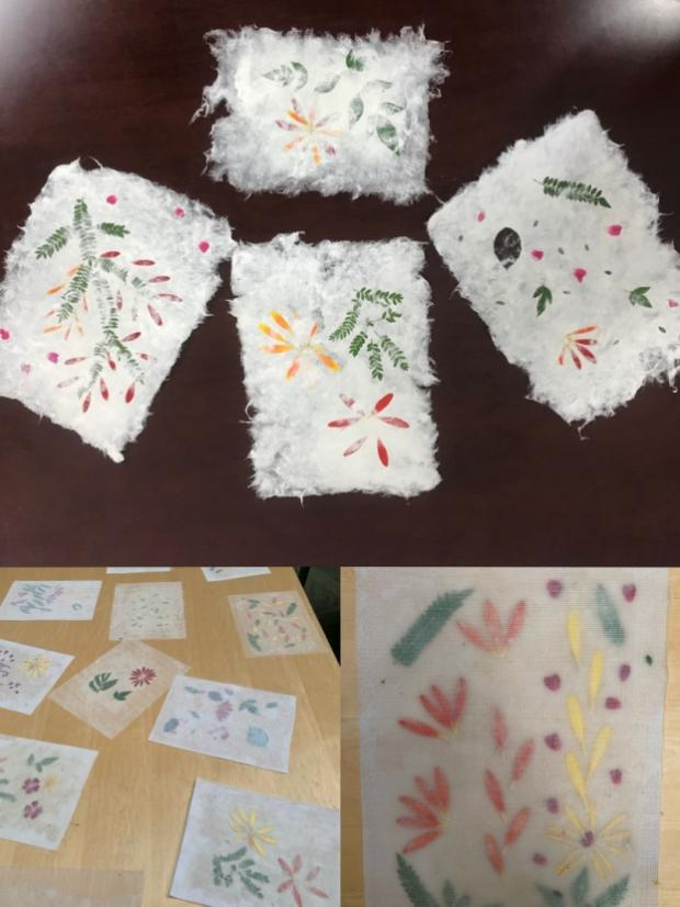 云南民族博物馆副研究馆员吴松懿以“浅谈云南传统造纸术”为题,讲述了造纸术的历史、宣纸的制作工艺以及云南少数民族如纳西族、傣族的造纸方法,增进了大家对造纸工艺的理性认识。讲座之后,兴致盎然的师生们在专家的指导下亲自体验古法造纸技艺。先在准备好的纸浆里抄纸,然后用各类鲜花、绿叶在纸上摆出自己喜欢的形状,最后再浇上纸浆,晒干,揭纸,一张美丽、独特又有个性的花草纸便完成了。来自华文学院的留学生也来到现场参加活动,师生们纷纷表示十分喜爱这次活动,期待图书馆举办更多的文化体验活动。